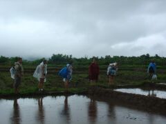 Oda (ISR) und Brandis (USA) beim Reispflanzen