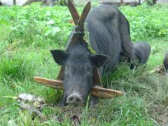 Schwein mit Halsschmuck damit es nichgt durch die Tuer kommt